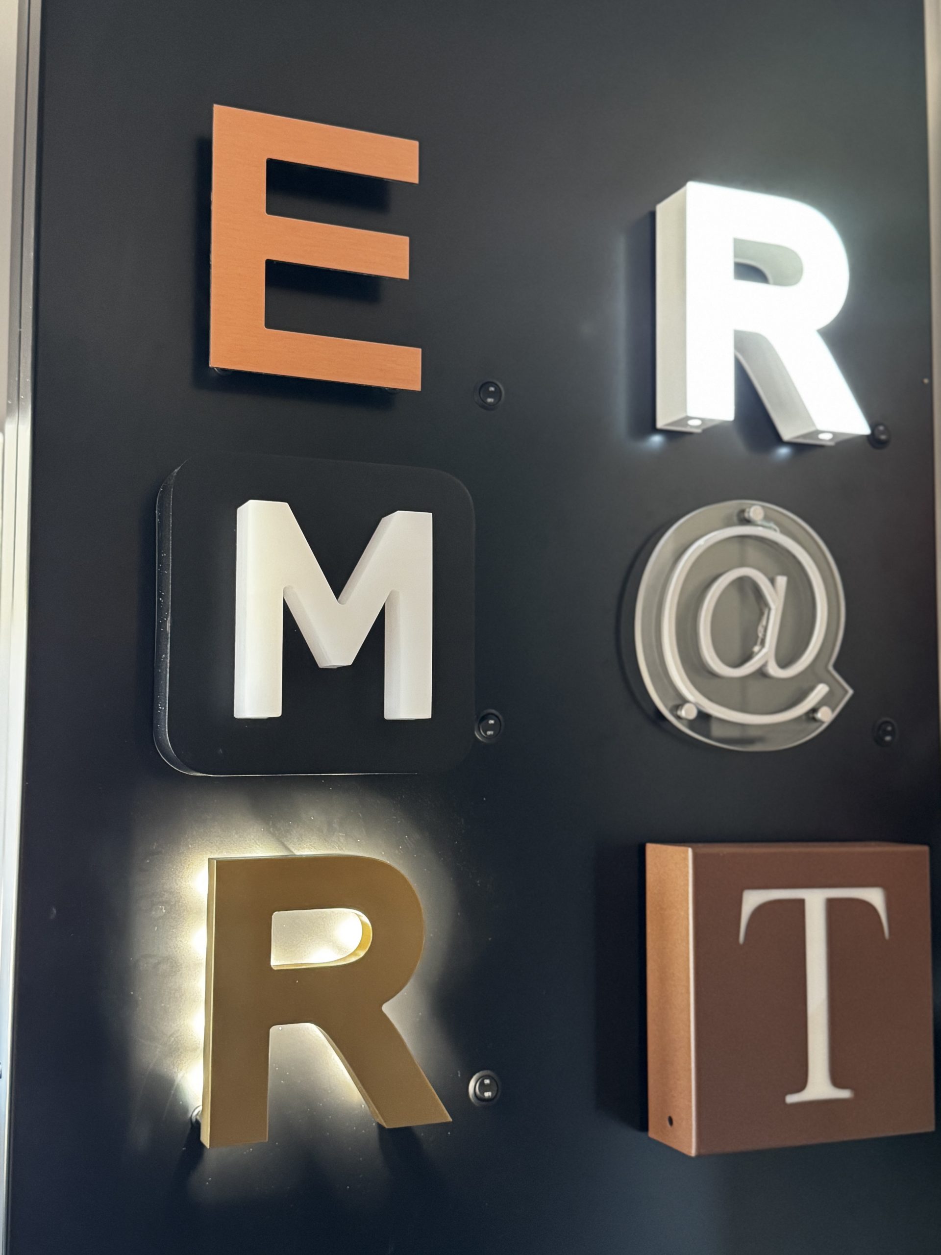 Le BLOCLED (PMMA diffusant de 30mm) après usinage et incrustation d’éclairage LED, permet d’obtenir des lettres lumineuses de fortes intensité. En variant les finitions il est possible d’obtenir des rendus lumineux complètement différents.